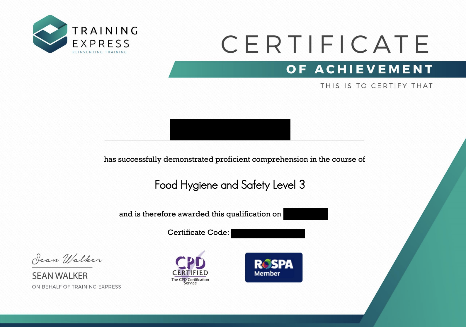 Food Hygiene Training Certificate