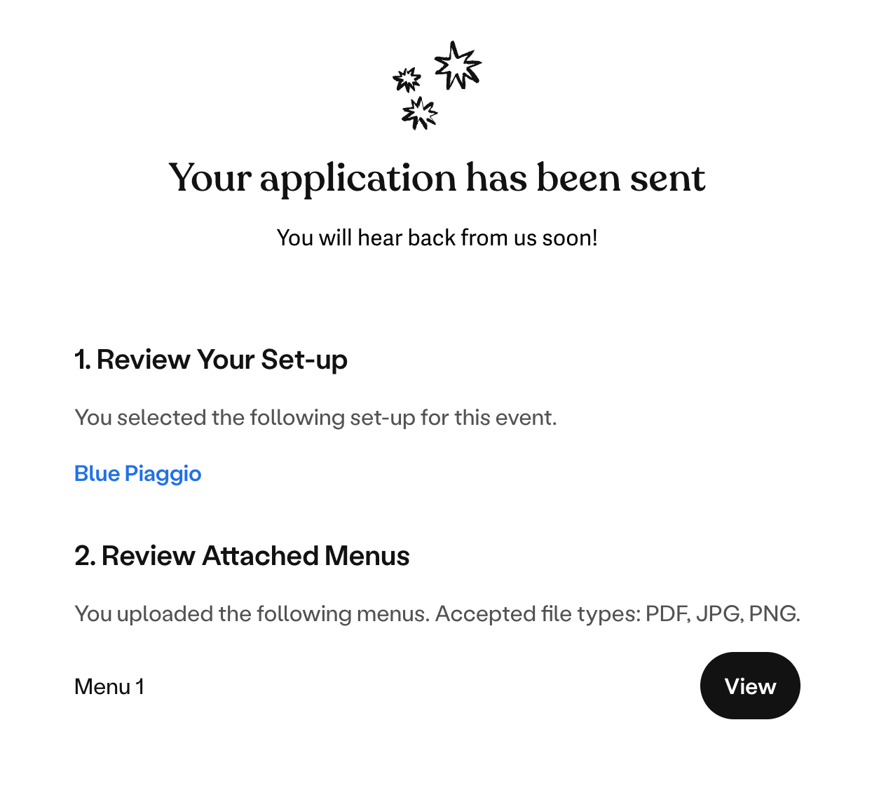Here you can also upload sample menus to showcase the food / drink offering you would provide for the event. Pricing does not need to be correct.
